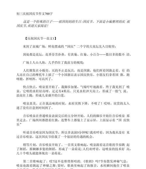 “古人云,‘饮水思源’,国庆节是为了纪念我们国家的成立,每一个中国人都应该铭记这个伟大的日子。”我引用了一句古训,同时心中暗自庆幸自己曾经在历史课上认真听讲。