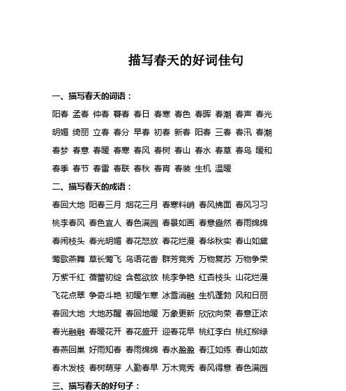 十二:春天是一种美好和希望的象征,它让人们感受到生命的无限可能性。在这个季节里,我们可以尽情享受自然和生命带来的美好。